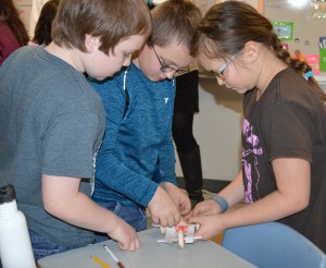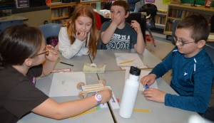 FARMINGTON — Fourth-graders in Amy Tracy’s class at Cascade Brook School worked together in groups Tuesday to make cars using four wooden wheels, two straws, an index card and three Popsicle sticks.