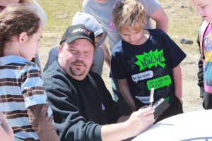 While some students bombarded Robbins with questions about driving at Oxford Plains Speedway in Oxford, Robbins directed their attention to how math has helped him as a driver over the years.
