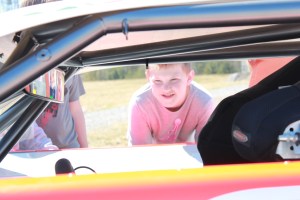 Scott Robbins brought his car and his racing gear, giving students an opportunity to look inside the car and see how some of his equipment worked.