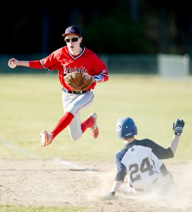 Caleb Hodgkin’s RBI single made it 1-0 in the first before the Patriots squirmed out of trouble with a Mann to Nathaniel Brindley to Nick Chandler double play. Belanger pushed it to 2-0 in the second on a successful squeeze after a single by Quinn Callahan and Gray-New Gloucester’s third of five errors.