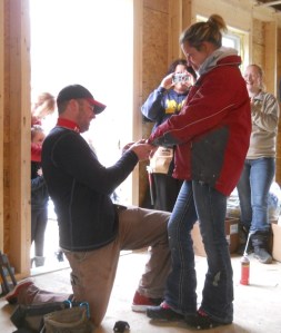 When Tester popped the question to Sarah Martin on St. Patrick’s Day, he did it at the site of their future home, a house she has been building since January as part of a self-help homeownership program.