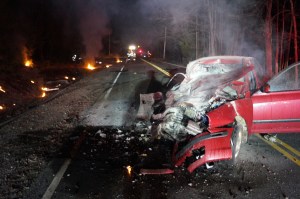 Oxford County deputies had just called off the pursuit, according to a news release issued by the Oxford County Sheriff’s Office, when the fleeing vehicle crashed into another vehicle, causing it to erupt in fire, just beyond the intersection of Watson Road and Route 118 at 11:20 p.m.