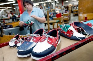 Production started in mid-September on 2,000 pairs of the special red, white and blue Olympic boat shoes.