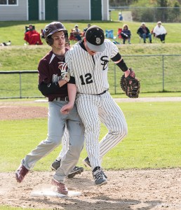 Harris who mixed a fastball and a curve all game long had the Saints either going after the fist pitch or swinging through the ball. Sanborn brought some heat, which the Saints were ready for.