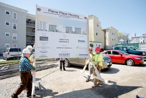 Developer Phyllis St. Laurent joined city officials and financial backers Wednesday morning at the site of her 29-unit housing development on 8 acres between Pierce and Bartlett streets.