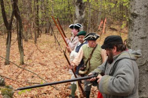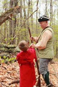 CANTON — A Dixfield man, with the assistance of a group of living history reenactors who depict life in the pre-1840 era, paid tribute to his sixth great-grandfather Friday evening by placing a flag and Revolutionary War marker on his unmarked grave.