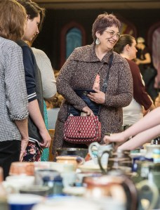 Barbara Mezel of Oxford browses the pottery table at the 12th annual Trinity Jubilee’s Empty Bowl Dinner on Sunday. The event is the largest fundraiser for the Center and features food from 14 local restaurants. Guests are encouraged to purchase pottery donated by The Potter’s House, Edgecomb Potters, Carrie White, Pottery by Celia, Georgetown Pottery, Saltbox Pottery, and students at Maine College of Art, Bates College and Saint Dominic Academy. While the idea behind the Empty Bowls Dinner is that the meal would be served in the purchased bowls, the event has gotten too popular to accommodate those logistics. The meal was provided by Marché, Gipper’s Sports Grill, Hurricane’s Café & Deli, Marco’s Italian Restaurante, She Doesn’t Like Guthrie’s, Wei Li, DaVinci’s Eatery and Sedgley Place as well as breads from Forage Market, the Italian Bakery, and Grant’s Bakery. Dessert was provided by from Subway, Governor’s Restaurant, and Sam’s Italian Restaurant. Proceeds from the event will help fund Trinity Jubliee Center’s summer programs and free breakfasts and lunches for local children in need.
