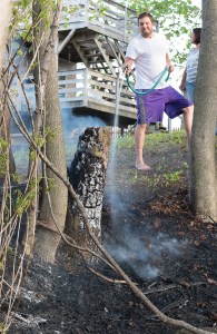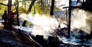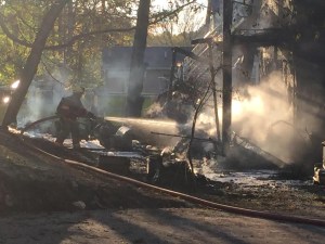“I had a can of gas on the porch from the snowblower, and I was afraid that was going to go, so I grabbed her stuff and ran back upstairs,” Goddard said, “and by that point, the smoke was about this close to the floor. I said, ‘That’s it, you’re coming with me,’ and we got the hell out of there.