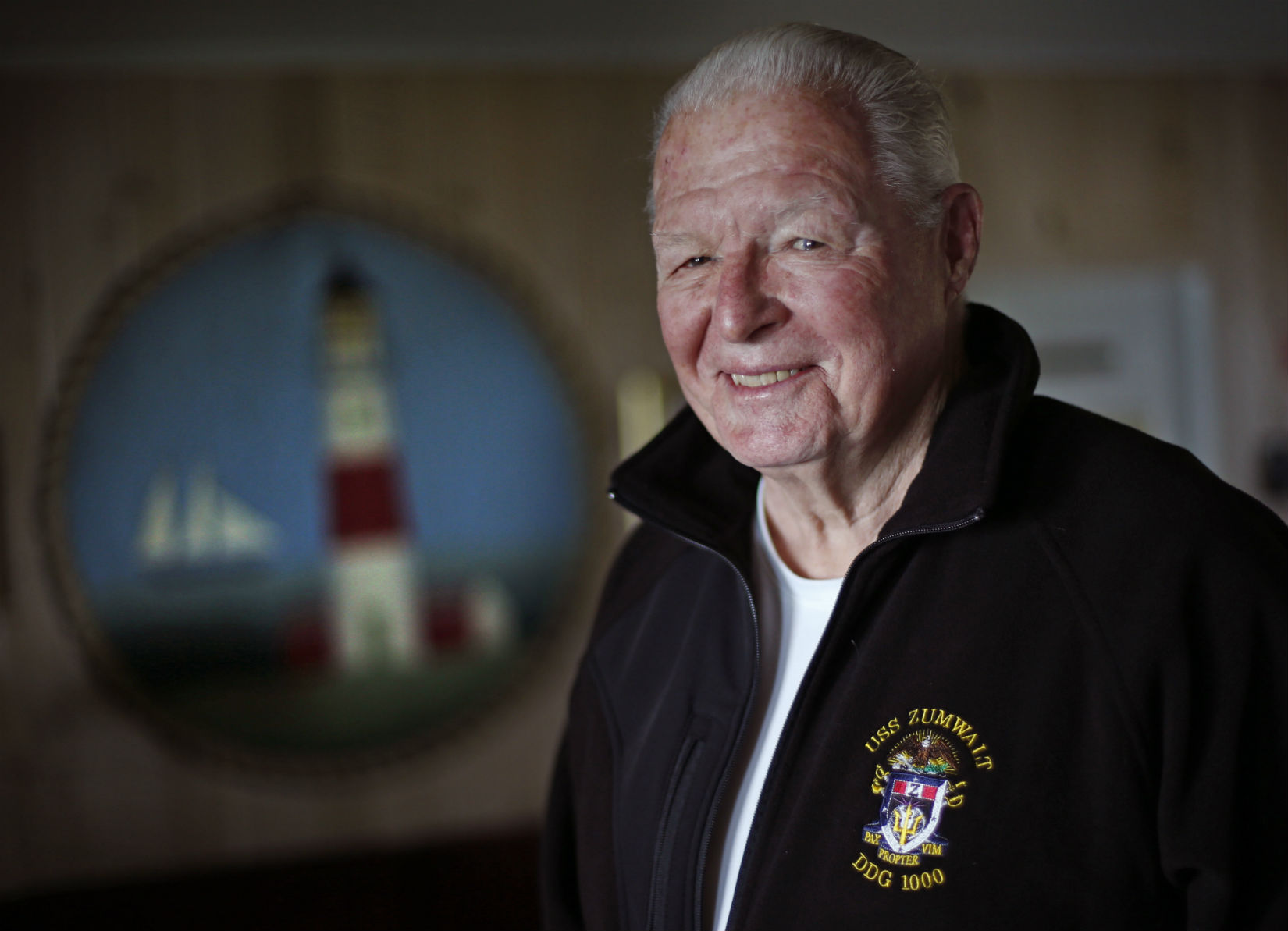 BATH (AP) — Captain Earl Walker wasn’t about to retire before seeing the Navy’s futuristic Zumwalt destroyer safely down the Kennebec River to the Atlantic Ocean.