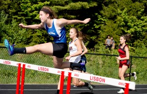 Lisbon’s Chase Collier (50.15) won the girls’ 300 hurdles and picked up a victory in the long jump with a lunge of 15-05.5.
