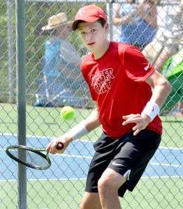 Top-seeded Nick Mathieu of Mt. Ararat High School advanced with little trouble through his draw to reach Monday’s semifinals. He dispatched Alex Klemperer in the quarterfinal round, 6-2, 6-1. He will face fourth-seeded Michael Mills of Cape Elizabeth, who nearly lost to Lewiston’s Timo Teckenberg in the round of 32 on Friday before rolling through his two matches on Saturday.