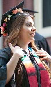 Turning to a more serious account of the Class of 2016, Spencer said the graduates represented 32 states (plus the District of Columbia) and 43 countries. Almost 10 percent were the first from their families to graduate from college; 67 percent studied abroad; 92 were double majors; and three were triple majors.