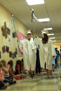At 12:45 p.m., the Class of 2016, led by Noah Brown and Gina Kubesh, began walking down the hallways, while Swan read off the names of the seniors over the intercom.