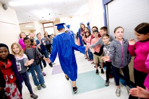 The walk reminds seniors how far they’ve come, gives them a chance to connect with the school that impacted their lives, “and serves as a motivational experience for the elementary students,” Webster said.