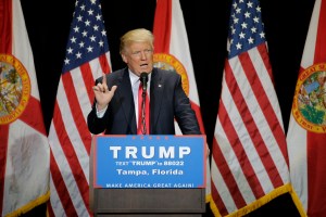 The Republican candidate also went after Sen. Elizabeth Warren, D-Mass., who political observers believe could become Clinton’s running mate. Trump has mocked her Native American heritage in recent weeks, regularly referring to her disparagingly as “Pocahontas.” He joked about apologizing for the comparison in Tampa Saturday – to Pocahontas herself.