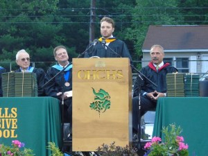 PARIS — While 240 students sat patiently Saturday night, each waiting to receive their symbol of high school success — their diploma — Oxford Hills Comprehensive High School alumnus Collin Del Cuore issued a challenge for their future.