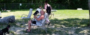 At noon on the first day of summer, the group chatted about their lives, their animals, the weather. The dogs, all small breeds, played around the yard, romping after each other, chewing stray twigs or lounging in the shade.