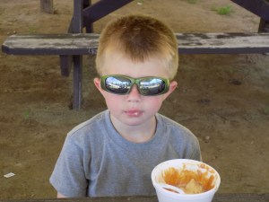 Jay resident Dana Churchill and his son, Dawson Churchill, sat at one of the tables, eating ice cream. Dawson’s cool shades reflected the scene both inside and outside the tent.