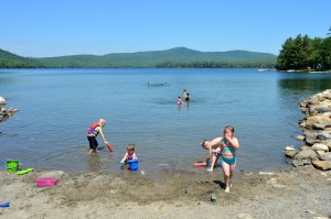 After a swim, Evan Phillips, 10, of New Sharon explored the area for hidden treasures with a small metal detector. He found two small pieces of metal fencing and a playing card, a jack of spades.