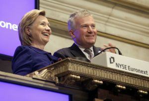 As she opened the day’s trading session, Clinton cited Wall Street’s resurgence after the 2008 recession. “Coming back as secretary of state after all that we’ve done in the last year to try to pull ourselves out of this economic downturn is very exciting,” she said.