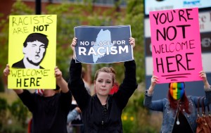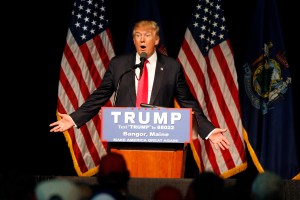 In Bangor, Trump said “stupid people” have been negotiating deals for the U.S. and promised to try to renegotiate the North American Free Trade Agreement, which he said “drained businesses from Maine.”
