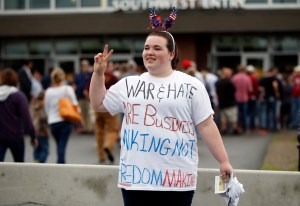 Cheryl Cyr of Old Town said she is registered as an independent but is an enthusiastic Trump supporter. She said she and her husband have been forced to finance their children’s education with their retirement savings, which she blames on establishment politicians.