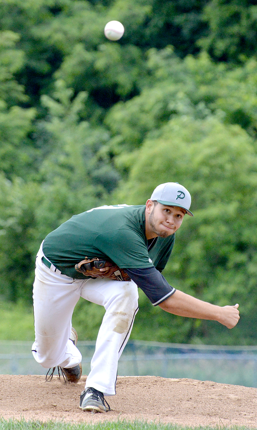 Pastime’s first-game starter Kyle Bourget, meanwhile, gave us just one walk in a complete-game win. The veteran right-hander set down the first nine Rogers Post batters before Austin Cox led off the fourth with a double, then he stranded him there. Bourget did the same thing after walking Brandon Varney to open the fifth.