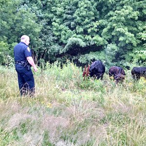 Lloyd says six officers formed a semi-circle around the cows and guided them toward a vegetated area.