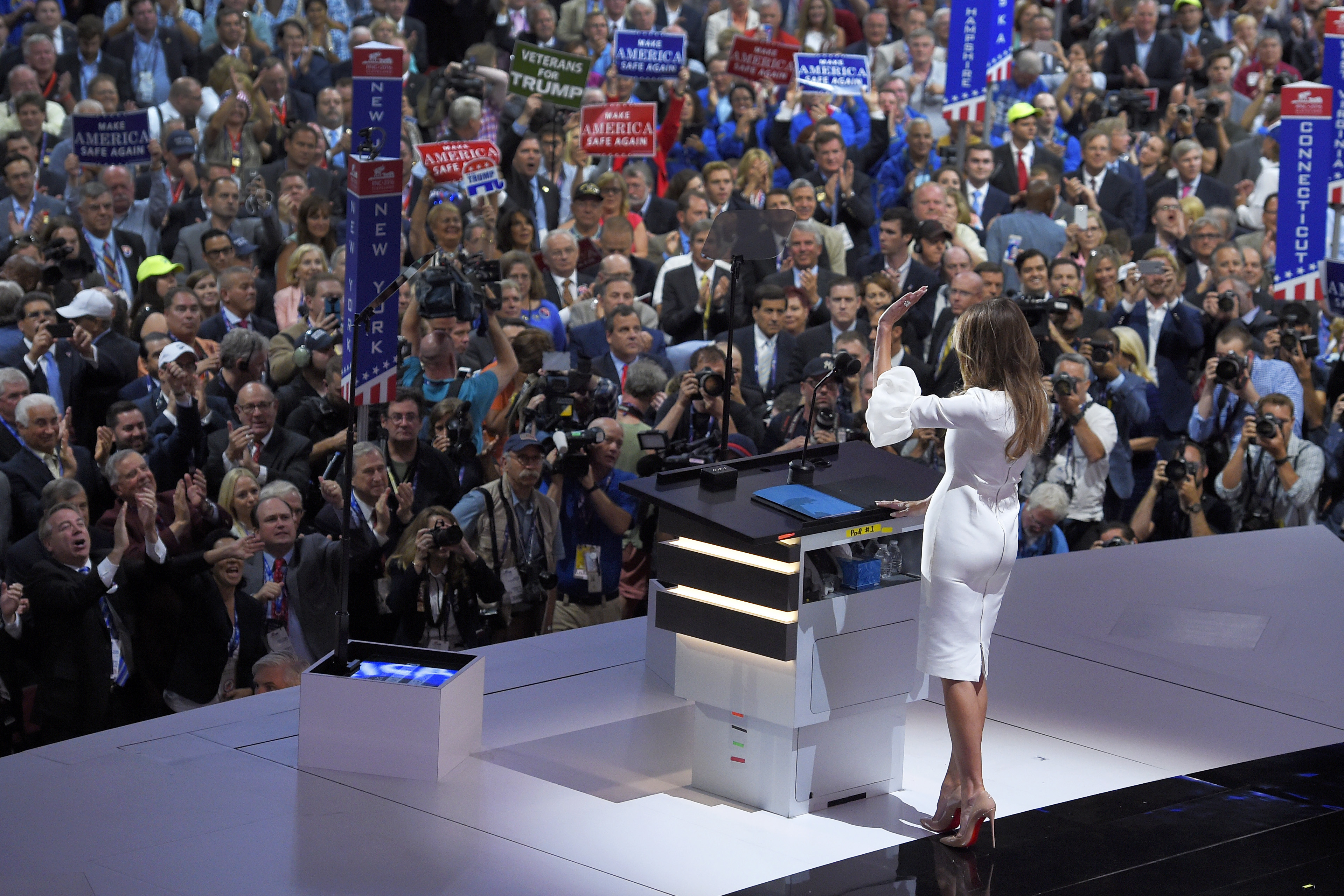 Donald Trump’s wife drew loud ovations for her speech Monday night at the convention in Cleveland – and when she walked off the stage with the presumptive Republican presidential nominee.