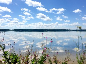 AUBURN — Unusually calm water at midday on Lake Auburn reflects the passing clouds and the surrounding landscape on Lake Shore Drive in Auburn on Wednesday. Temperatures in Lewiston-Auburn topped out in the mid-80s again Wednesday, and the long-range forecast calls for continued warm weather through the next several days.