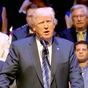 Trump’s supporters responded to his mention of Clinton by chanting, “Lock her up!”