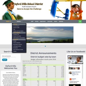 “By that, I mean that the usual website content is spiced up with our Facebook feed, a Twitter feed, database-driven updates to certain content, and customized content,” he said. “At the start, custom content will only be available to staff. When a staff person logs in, she will see content that a person not logged in will see. We plan to extend that to students and parents over the coming year or so.”