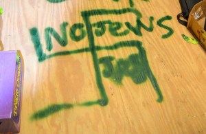 Damage included spray-painted anti-Semitic messages, swastikas, racial slurs and anti-police statements, Police Chief Russell French said.