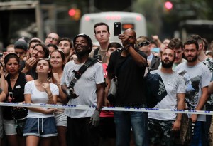 Police had deployed large, inflated crash pads at the scene, but it was unclear how much protection they would have offered if the climber fell.