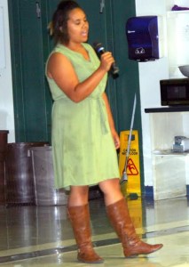 Jessica Ross, one of the volunteer directors, is an educational technician at the school, so she greeted most of the participants by first name and gave them lots of encouragement. The format is casual, she said, because the children might not have that last-minute courage to take the stage before an audience.