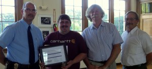 In presenting the award, Police Chief Stacy Carter said, “Mr. Roy undoubtedly put his own safety at risk to help others to safely get out. The officers that responded to that fire scene advised us that without the swift actions of Mr. Roy to alert the occupants, there would have been serious injuries or the loss of life.”