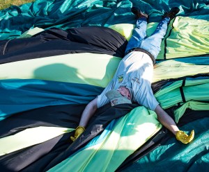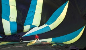 Crew chief Ellen Varney rolled out tarp and balloon getting it ready to be inflated.