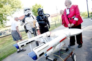 That seemed to be the popular sentiment. But in case anybody worried that “Star Wars” fandom was obligatory at the festival, Arnold Splan came marching through the park wearing a bright red “Star Trek” uniform and towing along a 4-foot replica of the Starship Enterprise.