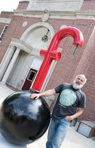 He created the first piece to go into an exhibit at the University of Maine at Farmington Art Gallery. It was an e, made of iron and titled “iron-e.” Art with cerebral humor.