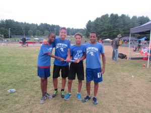 The Lewiston Recreation had many outstanding performances at the Maine USATF 15 and Under Track and Field Championship on Saturday, Aug. 13. Lewiston had four individual event winners and took first place in five relays. The 11-12 Boys 4×400 Relay (Donovan Jackson, Nigel Katende, Shekh Mohamed, Jabreel Muhammad-Aceto) set a new state record with a time of 4:42.52 beating the old mark of 4:43.6 set by Scarborough in 1990. Lewiston qualified 45 athletes for the meet and placed ninth in the team championship (141) out of 38 teams. Poland won the Team Championship (361) followed by Old Town (224), Gorham (195) and Portland (192.5).