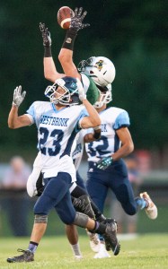 But the Hornets only had one second left after Tim Albert spiked the ball at Westbrook’s 21-yard line. On Leavitt’s last chance Albert’s pass was intercepted by Westbrook’s Kyle Champagne to seal a 27-21 victory for the Blue Blazes.