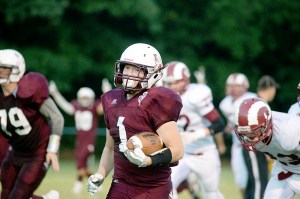 Edward Little opened the game driving down the field behind Begos’ running before stalling out at the Bangor 18 yard line. After trading punts, Bell got the Red Eddies on the board with a 47 yard dash down the sidelines with 3:44 remaining in the first quarter.