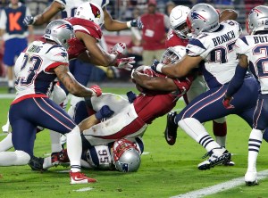 Garappolo completed 24 of 33 passes with no interceptions. Arizona’s Carson Palmer threw for 271 yards and two touchdowns, both to Larry Fitzgerald.