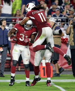 A remarkable 45-yard run by David Johnson set up a 2-yard, over-the-shoulder touchdown catch by Fitzgerald that gave the Cardinals their only lead of the night, 21-20, with 9:46 remaining.