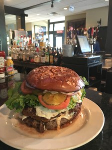 Too much food. Or too much to finish in 30 minutes. That’s the challenge part of ordering the $40 “Burger Challenge” at the Sunday River Brewing Company. If anyone can eat the “Burger Challenge” in 30 minutes then they get a $100 gift certificate, a T-shirt and their picture on the wall.