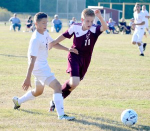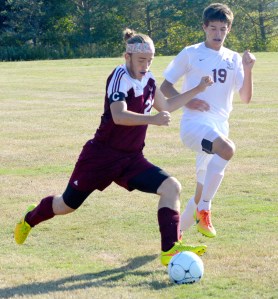 Both the Richmond High School boys soccer team and visiting Buckfield were handed favorable bounces at the end of each half in Tuesday’s Class D South tussle, and both turned the bounces into goals.