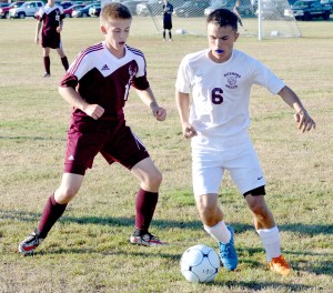 After the ball was hit back to defender Matthew Rines, Beaucage and a Buckfield (3-1-1) teammate charged him. Rines turned and tried to clear the ball away, but the pressure was too much and the ball went rolling off Beaucage’s leg toward the net. He ran after it and coolly finished past goalie Zach Small to make the score 1-1.