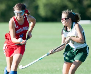 “We’re a lot faster on turf,” Messalonskee coach Katie McLaughlin said, explaining one of the reasons for the score difference from one game to the next. “I think they played a really strong defense. They really slowed down our forwards in the scoring circle, and their defensive corners did a great job against us. Their goalie, I have to give her all the credit in the world, she does a great job in there.”
