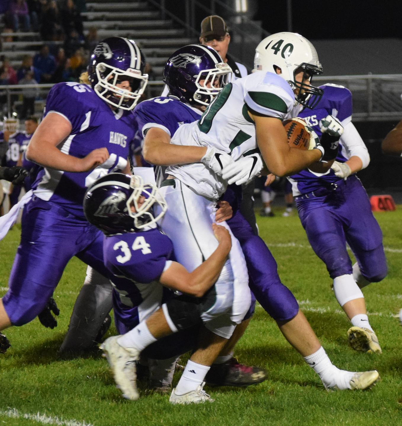 Chris Sarzynski rushed for 103 yards and a touchdown on 17 carries, and Kyle Glidden scored rushing and receiving touchdowns for the Hawks, the two-time defending champions in Class B who were coming off one of their most lopsided recent losses a week ago at Westbrook.