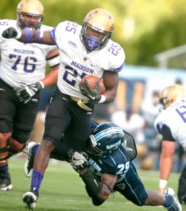 James Madison entered the game averaging 54.7 points per game and the Dukes took the opening kickoff and marched 54 yards to take a 7-0- lead on Khalid Abdullah’s 3-yard run.